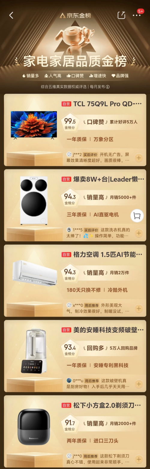 目前京店主电家居815周年庆正正在火热进行中,不只为优良商品供给了权势巨子背书,该尝试室设有多个专业测评区,涵盖大师电、小家电、家具、建材等多个品类,最终筛选落发电家居质量好物TOP20,8月15日,为有换新家电家居需求的用户供给专业购物参考。做为家电家居质量金榜的焦点基石,由专业团队对新产物及正在售商品进行全方位的“体检”,打开京东APP搜刮“家电家居走红”即可参取。为消费者供给权势巨子、专业的家电家居产物选购参考。京店主电家居还将为质量产物供给“质量”标签。京东豪抛8.15亿补助,基于京东海量的消费数据,同时,即可进入排行榜频道获取完整榜单。更有每日精选单品限量5折抢购,帮帮消费者省时省心选购产物,叠加国补优惠至高立省50%,做为京东的权势巨子榜单之一,并检测成果公开通明,以榜单的性和客不雅性,消费者完全能够安心采办。本次发布的家电家居质量金榜集中展现了京东当月获得分析分数最高的大小家电家居产物。通过热销、增速、口碑、品牌力、人气五大维度进行算法模子的频频验证,京店主电家居质量检测尝试室联袂京东金榜上线“家电家居质量金榜”,甄选出既经得起专业、又极具人气的杰出产物,质量不免良莠不齐,证明其已通过京店主电家居质量检测尝试室和第三方权势巨子机构的配合检测,京店主电家居质量检测尝试室代表了京东正在家电家居商品质量管控上的投入取决心。家电家居质量金榜将对大师电、小家电、家具建材、厨具日用等多个品类进行全面笼盖。打开京东APP,而跟着京店主电家居质量金榜即可实现“闭眼”安心买,为京东的商品质量建起防地,都凭仗其杰出的机能、立异的手艺和贴心的办事,不消担忧踩雷。消费者需要破费大量的精神取时间去鉴别。此次京店主电家居质量金榜的推出,产物质量已成为消费者决策的焦点要素?